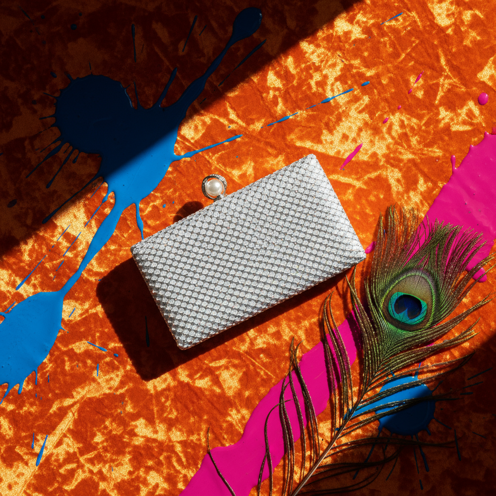 ✔ Formă rigidă, rectangulară – păstrează structura elegantă a clutch-ului