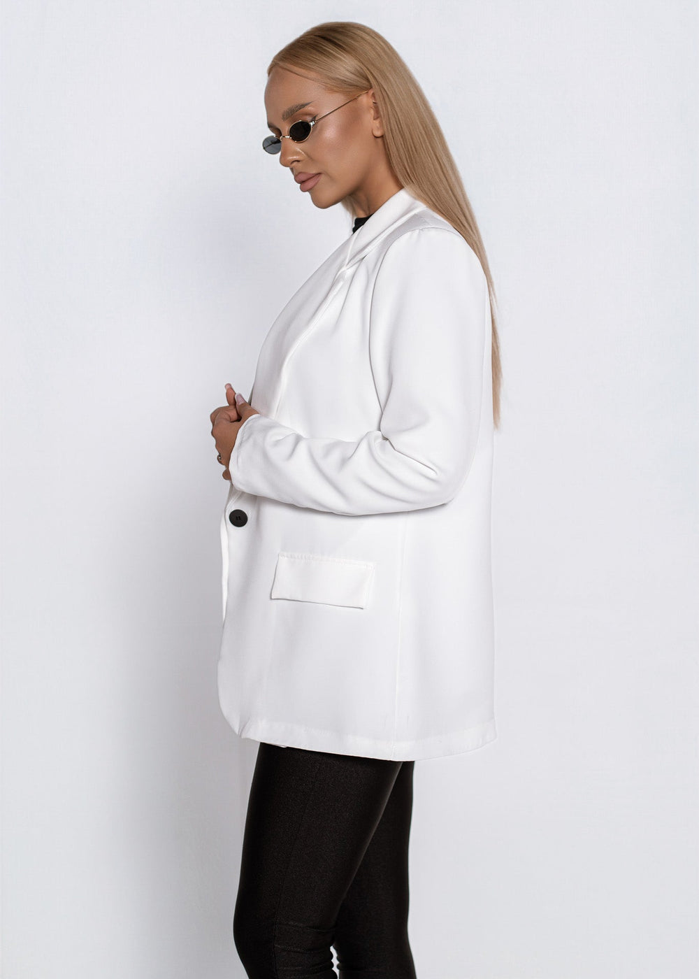 Realizat din material plin, cu o croială dreaptă și o linie curată, acest sacou adaugă un aer sofisticat și rafinat, păstrând în același timp confortul. Disponibil în mai multe nuanțe moderne — alb, negru, maro, mov și roșu — se potrivește oricărui stil și moment al zilei.
