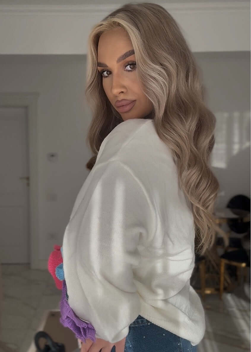 Realizat dintr-un tricot moale, plăcut pe piele, puloverul are o croială lejeră, modernă, ușor oversize, perfectă pentru ținute de zi confortabile, dar cu impact vizual. Detaliile florale 3D, realizate manual și aplicate pe mâneci și umeri, creează acel statement moment care atrage privirile, în timp ce baza alb-ivorie evidențiază superb culorile vibrante. Este piesa ideală pentru un vibe fresh, playful și unmistakably SIA.